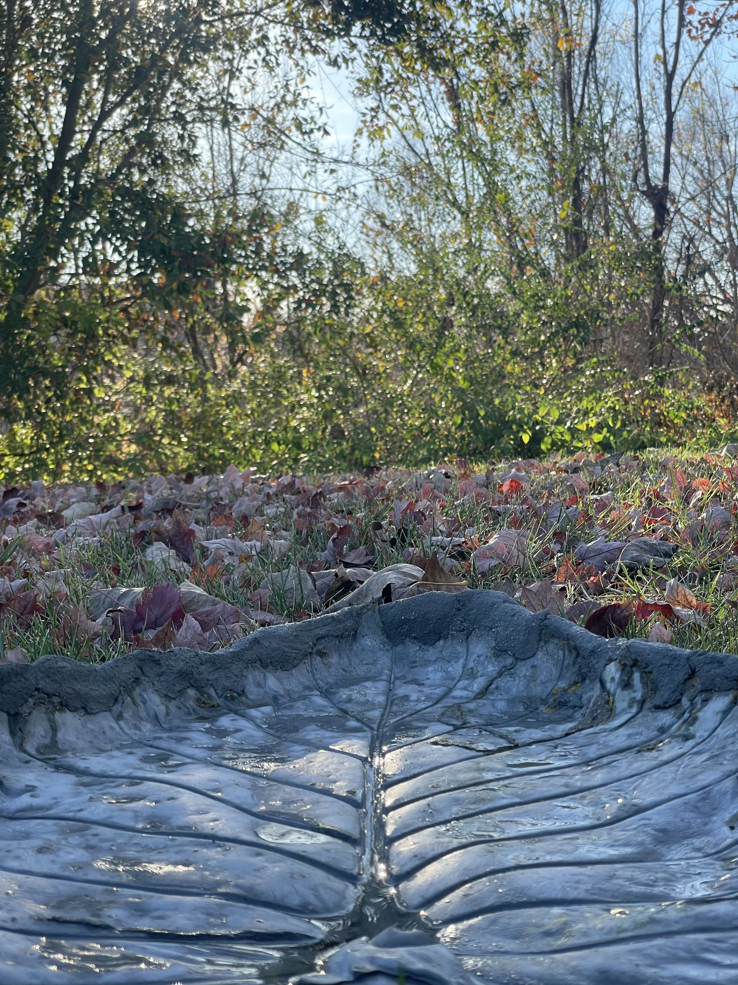Concrete, ground level bird baths.